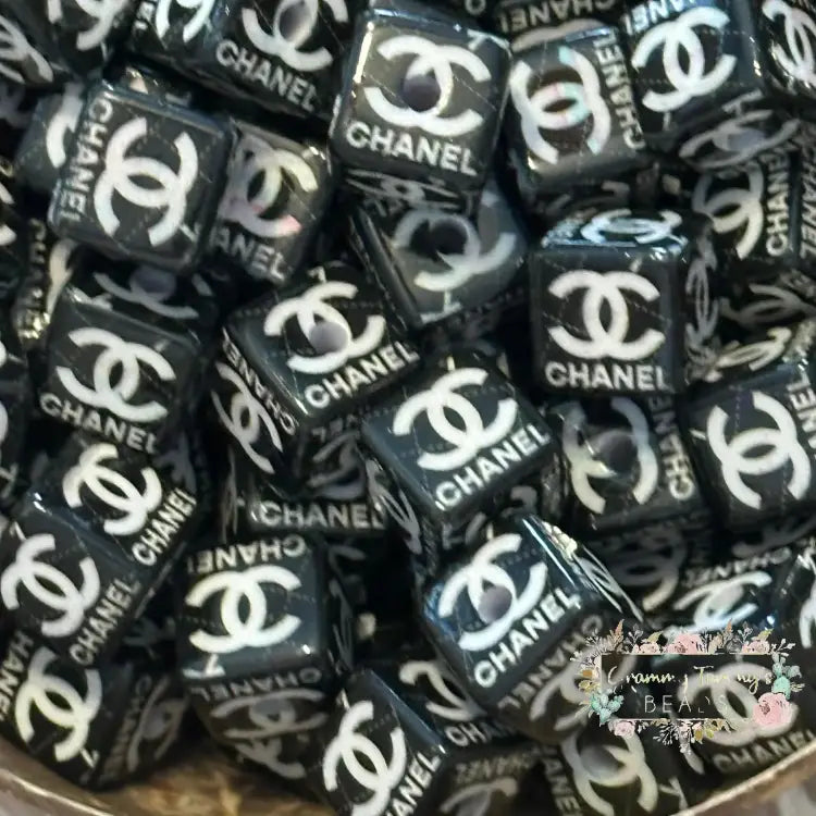 CiCi Square High Quality Acrylic Beads 5-Count Black & White Acrylic Beads