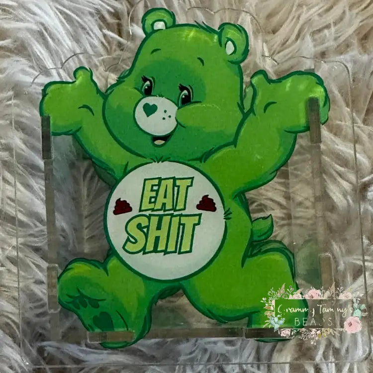 ACRYLIC PEN/PENCIL/MAKE UP BRUSHES HOLDER - Swearbear - Green - Eat Sh*t