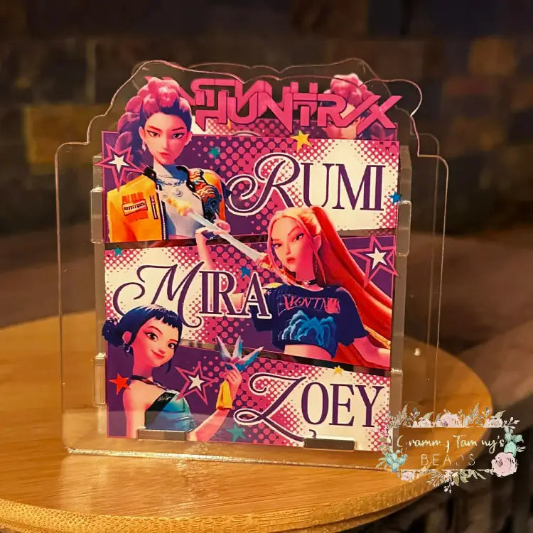 Your acrylic holder comes with 2 decorated side panels and 3 connecting pieces to form the stand. Each piece is covered with a thin protective film on both sides to prevent scratches.